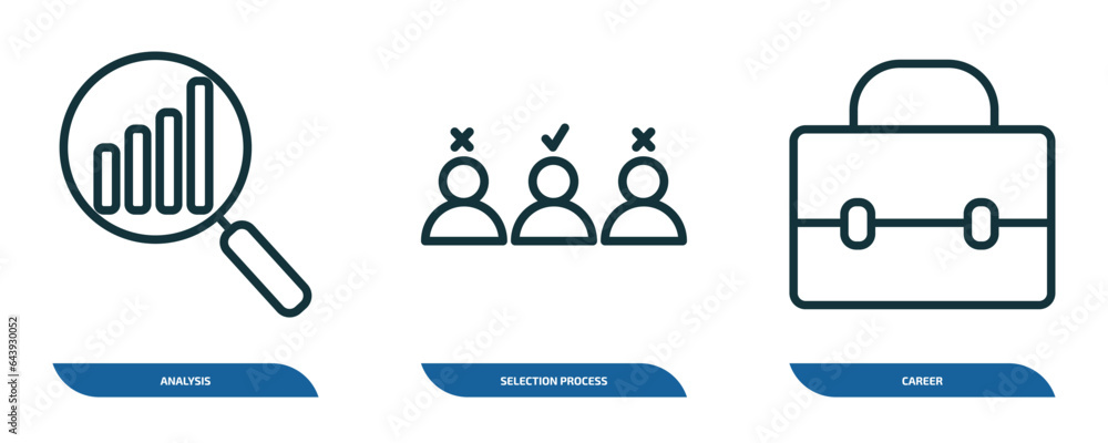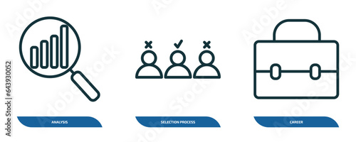 Wall mural : Set of 3 linear icons from human resources concept - outline icons such as analysis, selection proces