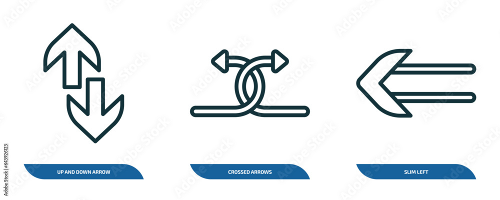 Wall mural set of 3 linear icons from user interface concept. outline icons such as up and down arrow, crossed  - Wall murals Wall mural set of 3 linear icons from user interface concept. outline icons such as up and down arrow, crossed - Wall murals