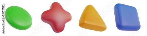 Wall mural set of 3d cartoon colorful simple geometric shapes in realistic soft style. collection minimal form