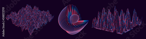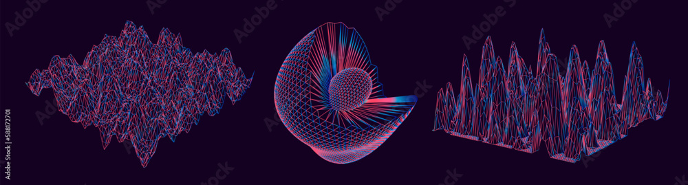 Wall mural set of 3d glitched planes made of mesh. generative art plots for data visualization and analysis sub - Wall murals Wall mural set of 3d glitched planes made of mesh. generative art plots for data visualization and analysis sub - Wall murals