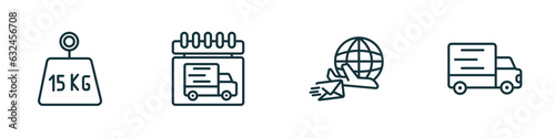 Wall mural : Set of 4 linear icons from delivery and logistic concept - outline icons included weight limit, deliv