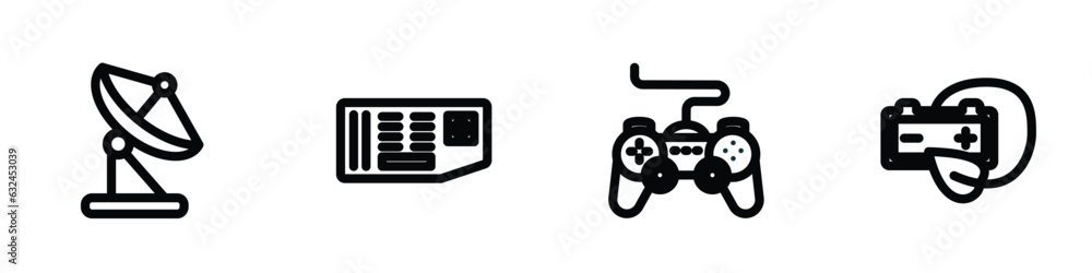 Wall mural set of 4 linear icons from technology concept. outline icons included reciever, circuit board, gamep