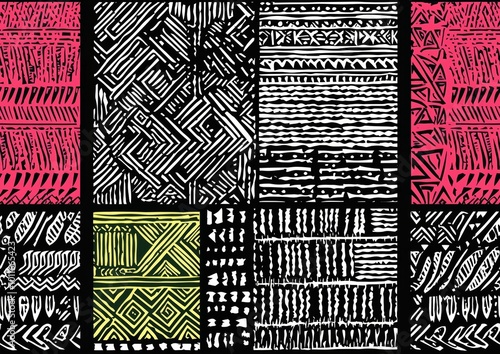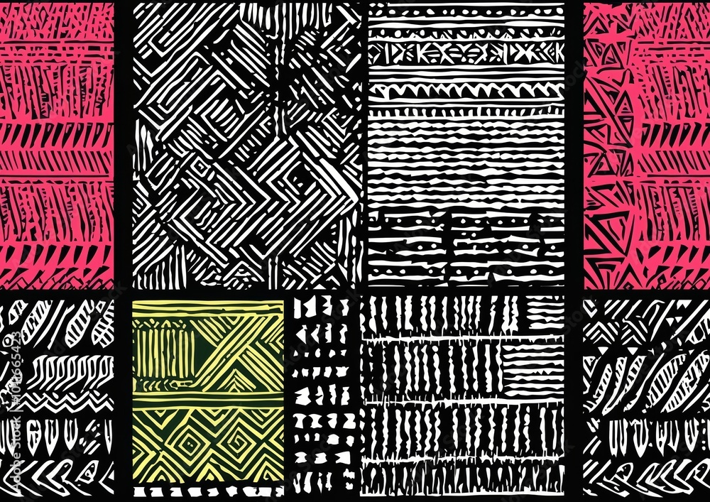 Wall mural set of 8 primitive geometric patterns collection - Wall murals Wall mural set of 8 primitive geometric patterns collection - Wall murals