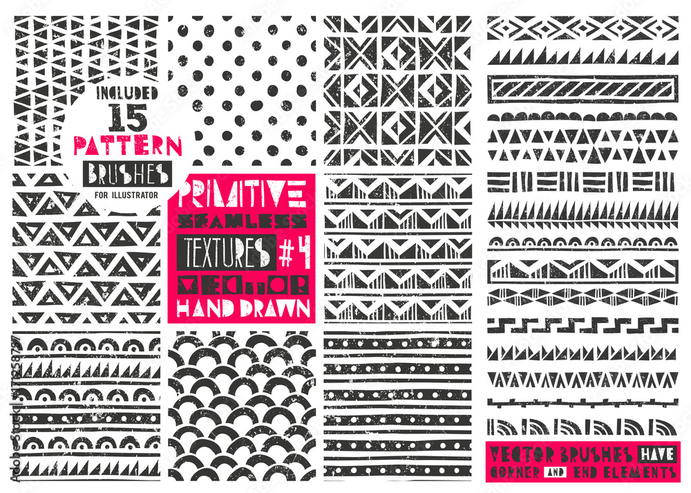 The watermark will not be included on Wall mural.: Set of 8 primitive geometric patterns collection - includes 15 pattern brushes for illustrator - moder