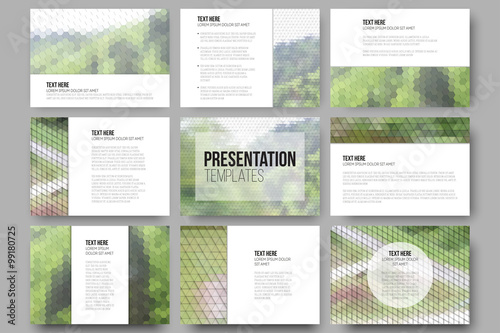 The watermark will not be included on Wall mural.: Set of 9 templates for presentation slides - nature landscape - abstract multicolored backgrounds - nat