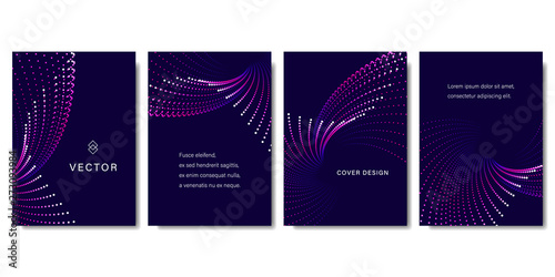 Wall mural set of abstract backgrounds with colorful dots in purple tones. modern vector illustration without t