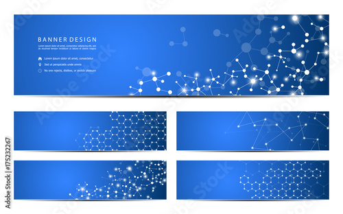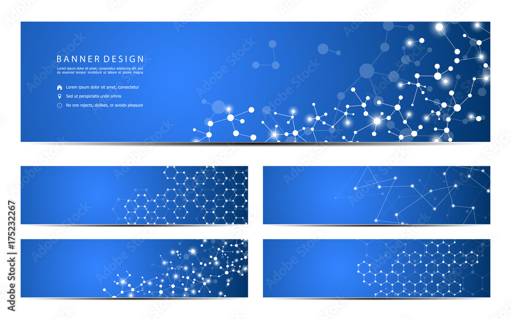 Wall mural : Set of abstract banner design, dna molecule structure background - geometric graphics and connected l