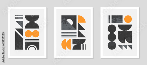 Wall mural set of abstract bauhaus geometric pattern backgrounds.trendy minimalist geometric design with simple