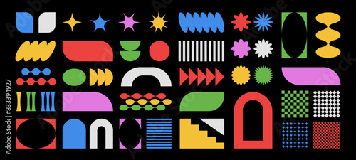 The watermark will not be included on Wall mural.: Set of abstract brutal shapes and forms in y2k style, sticker set of retro geometric figures - vector