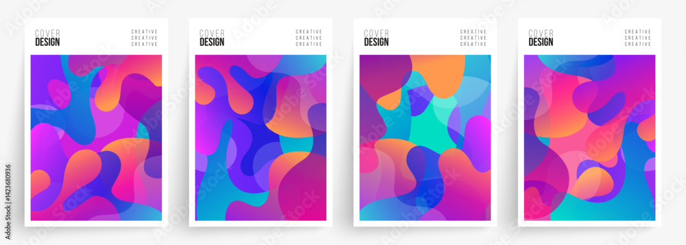 The watermark will not be included on Wall mural.: Set of abstract covers - bright color waves and splashes - dynamic vibrant color gradients - flowing li