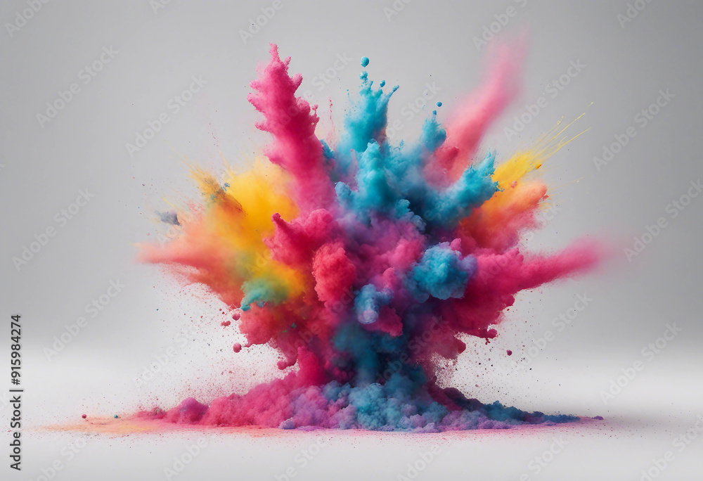 The watermark will not be included on Wall mural.: Set of abstract explosion of colored powder colorful paint splashes element for design isolated on w