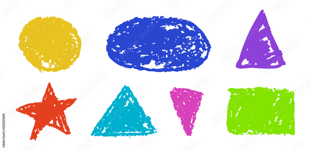 Wall mural set of abstract geometric basic shapes drawn with colored charcoal. hand drawn paint quote frame col