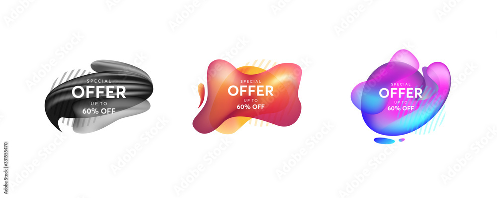 The watermark will not be included on Wall mural.: Set of abstract liquid shape - fluid design, abstract modern graphic elements - dynamical colored form