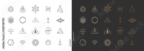 Wall mural set of abstract sacred geometry symbol vector elements template, clean minimal geometric logo collec