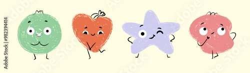 The watermark will not be included on Wall mural.: Set of abstract shape with faces showing emotions -
