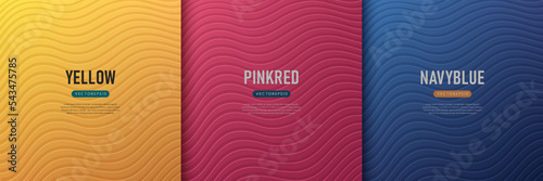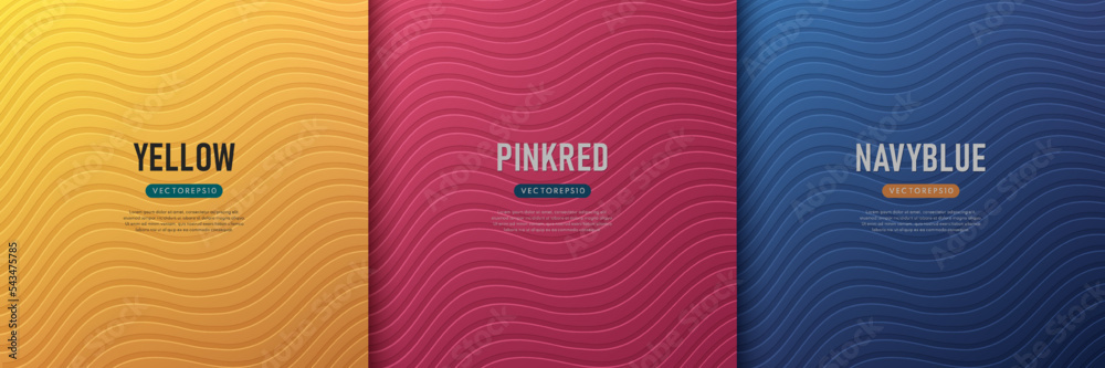 Wall mural set of abstract trendy color banner wavy pattern texture background. yellow, pink red and dark blue