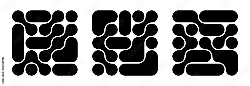 Wall mural set of background with black liquid connected circle dots.metaballs pattern on white. abstarct geome - Wall murals Wall mural set of background with black liquid connected circle dots.metaballs pattern on white. abstarct geome - Wall murals