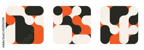 Wall mural : Set of background with black liquid connected circle dots - metaballs pattern on white - abstract geome