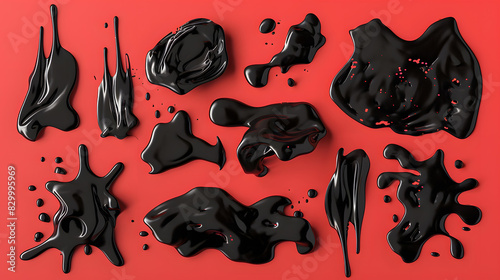 Wall mural set of black abstract shapes covered with texture. collection of amorphous drops of various irregula - Wall murals Wall mural set of black abstract shapes covered with texture. collection of amorphous drops of various irregula - Wall murals
