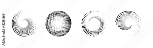 Wall mural : Set of black and white halftone radial patterns - dotty vector circles and swirls -