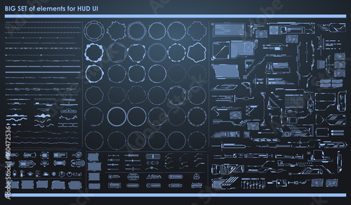 The watermark will not be included on Wall mural.: Set of black and white infographic elements - head-up display elements for the web and app - futuristi