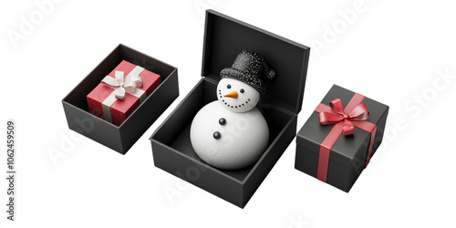 Wall mural set of black box with include snowman isolated on transparent background, png elements collection.