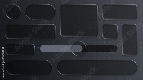 Set of black liquid glass elements - ui ux mobile app design - modern website interface - futuristic grWall mural