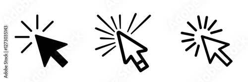 Wall mural set of black mouse arrow clicking icons with sparkling effect on transparent background