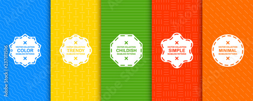 Wall mural : Set of bright vector seamless geometric patterns - minimalistic design - colorful stylish backgrounds