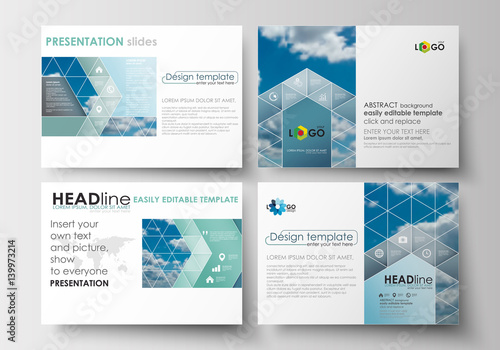 The watermark will not be included on Wall mural.: Set of business templates for presentation slides - easy editable abstract blue layouts in flat desig