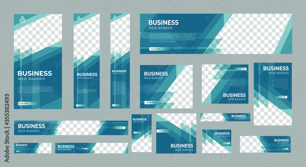 The watermark will not be included on Wall mural.: Set of business web banners of standard size with a place for photos - vertical, horizontal and squar