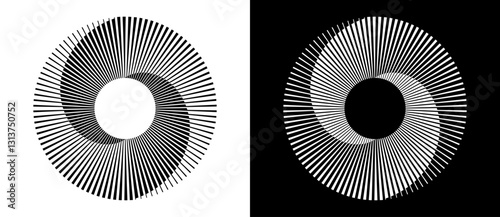 The watermark will not be included on Wall mural.: Set of circles with lines - lines in one color with different thickness - black spiral on white backgr