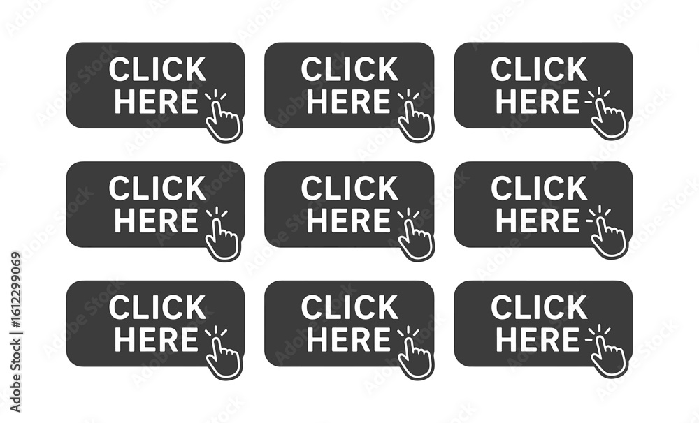 Wall mural set of click here buttons with cursor icon in grid layout - Wall murals Wall mural set of click here buttons with cursor icon in grid layout - Wall murals