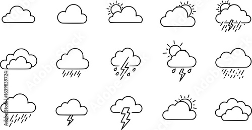 The watermark will not be included on Wall mural.: Set of clouds in a linear style - cloud in line or outline collection - vector illustration -