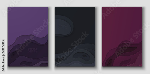 The watermark will not be included on Wall mural.: Set of color abstract cards with multi-layered papercut shapes -