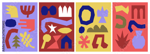Set of colorful abstract compositions with organic doodles elementsWall mural