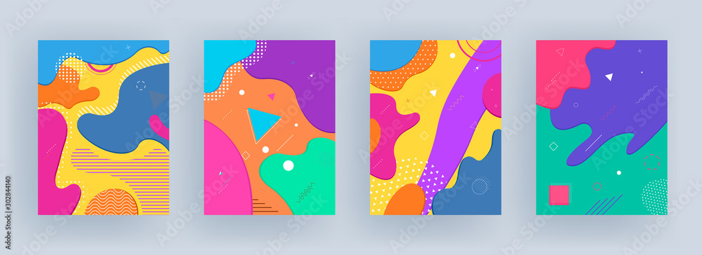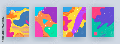 Wall mural : Set of colorful fluid art abstract background with geometric elements -