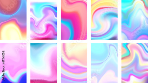 Wall mural : Set of colorful hologram banner - abstract holographic wavy gradient mesh color backgrounds -