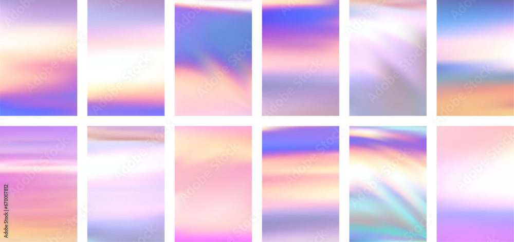 Wall mural : Set of colorful hologram banner - abstract holographic wavy gradient mesh color backgrounds -