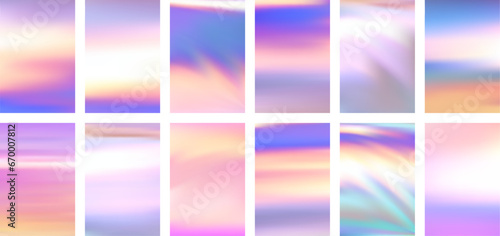 Wall mural set of colorful hologram banner. abstract holographic wavy gradient mesh color backgrounds.