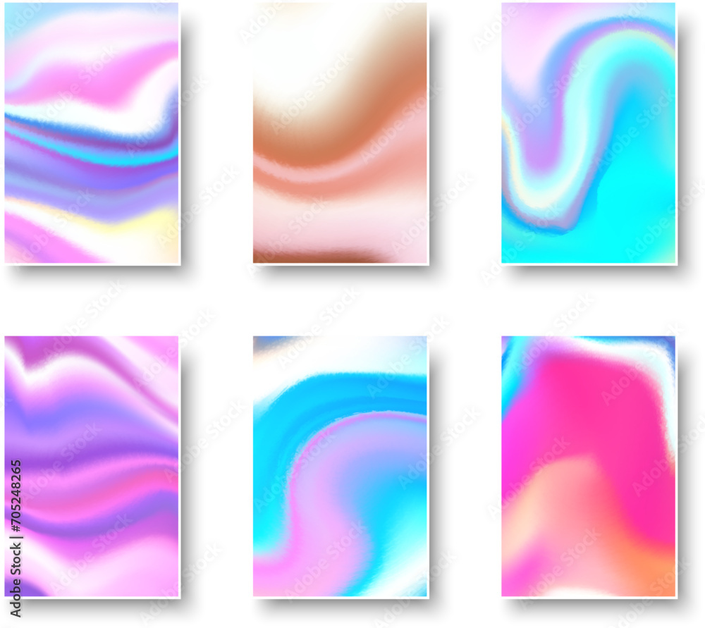 The watermark will not be included on Wall mural.: Set of colorful hologram paper card - abstract holographic wavy gradient mesh color backgrounds -