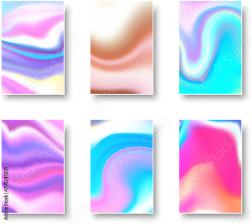 Wall mural : Set of colorful hologram paper card - abstract holographic wavy gradient mesh color backgrounds -