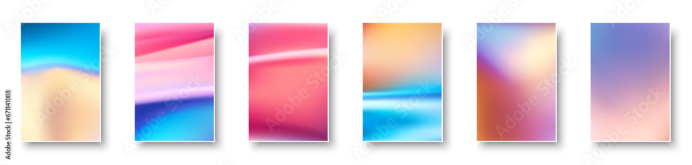 The watermark will not be included on Wall mural.: Set of colorful hologram paper card - abstract holographic wavy gradient mesh color backgrounds -