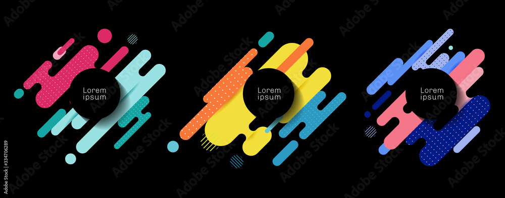 Wall mural : Set of colorful rounded lines shapes diagonal rhythm dynamic composition with black space circle lab