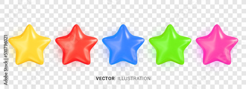 Wall mural set of colorful stars. collection of realistic 3d multicolored vector star shapes on transparent bac