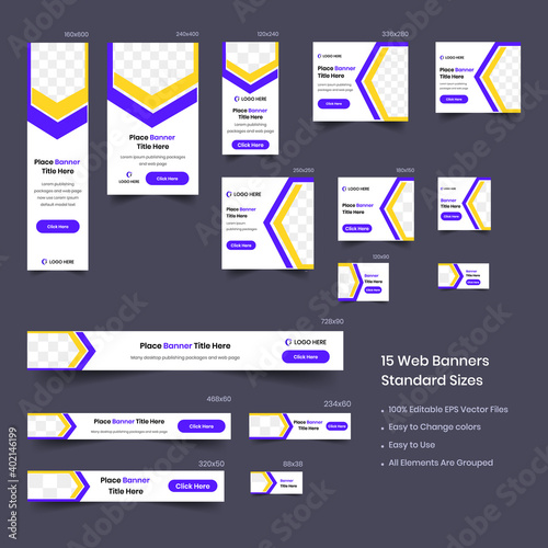 Wall mural : Set of creative web banners of standard size with a place for photos - business ad banner - vertical,