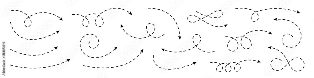 The watermark will not be included on Wall mural.: Set of curved arrows with dashed lines -
