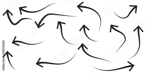 The watermark will not be included on Wall mural.: Set of curved hand drawn arrows and pointers - vector illustration