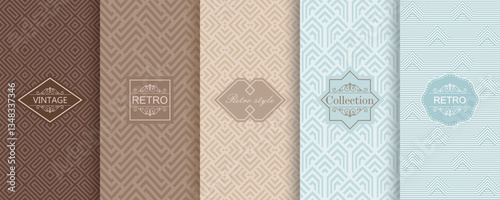 The watermark will not be included on Wall mural.: Set of cute geometric seamless patterns on modern background with minimal labels, frames - abstract v