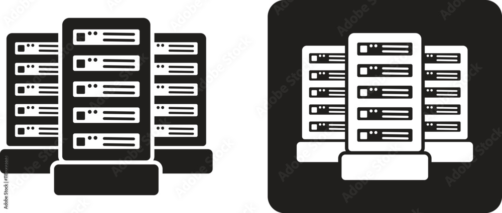 The watermark will not be included on Wall mural.: Set of data center server icons - data center icon symbols with two different styles - vector illustra